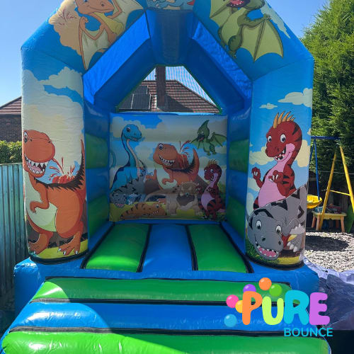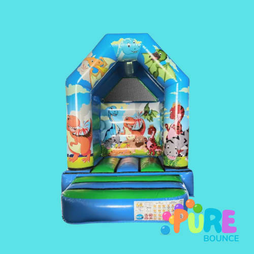 Let your little ones bounce into a prehistoric world with our 10x8ft Dinosaur Bouncy Castle! This compact inflatable is designed especially for toddlers and younger children, offering safe, colourful fun with adorable dino graphics and vibrant colours.